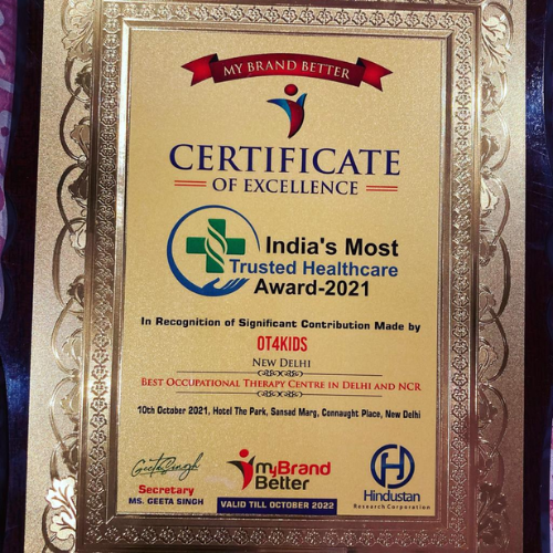 India Most Trusted Health care Award in 2021: OT4KIDS Best Occupational Therapy Centre in Delhi and NCR Rising Professional Excellence Award 2025 Bihar